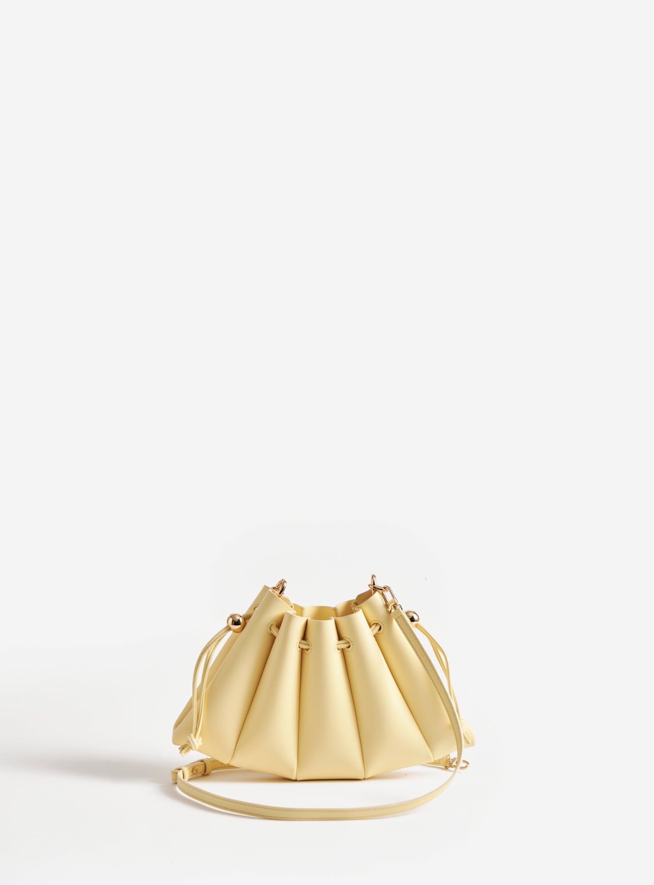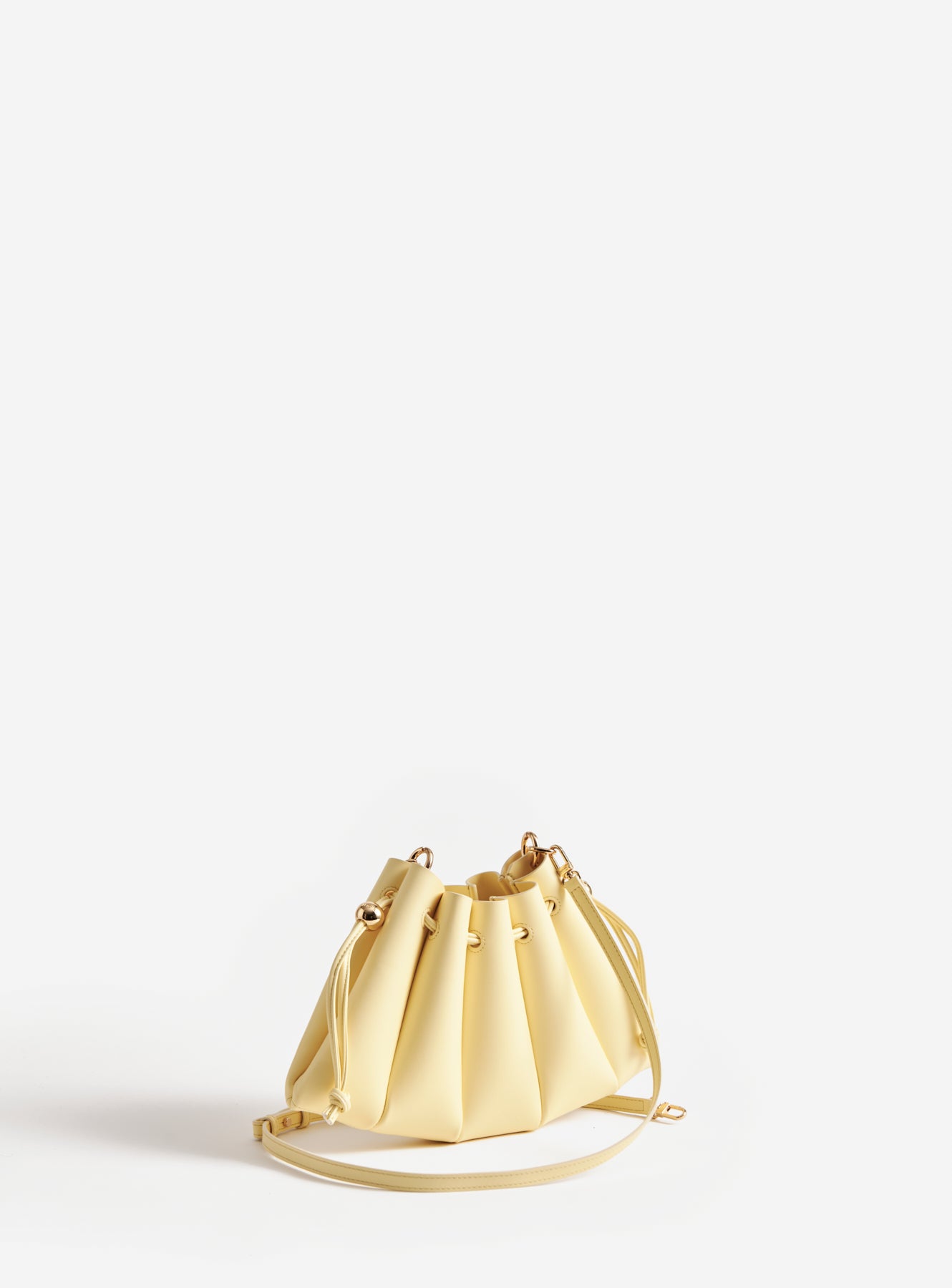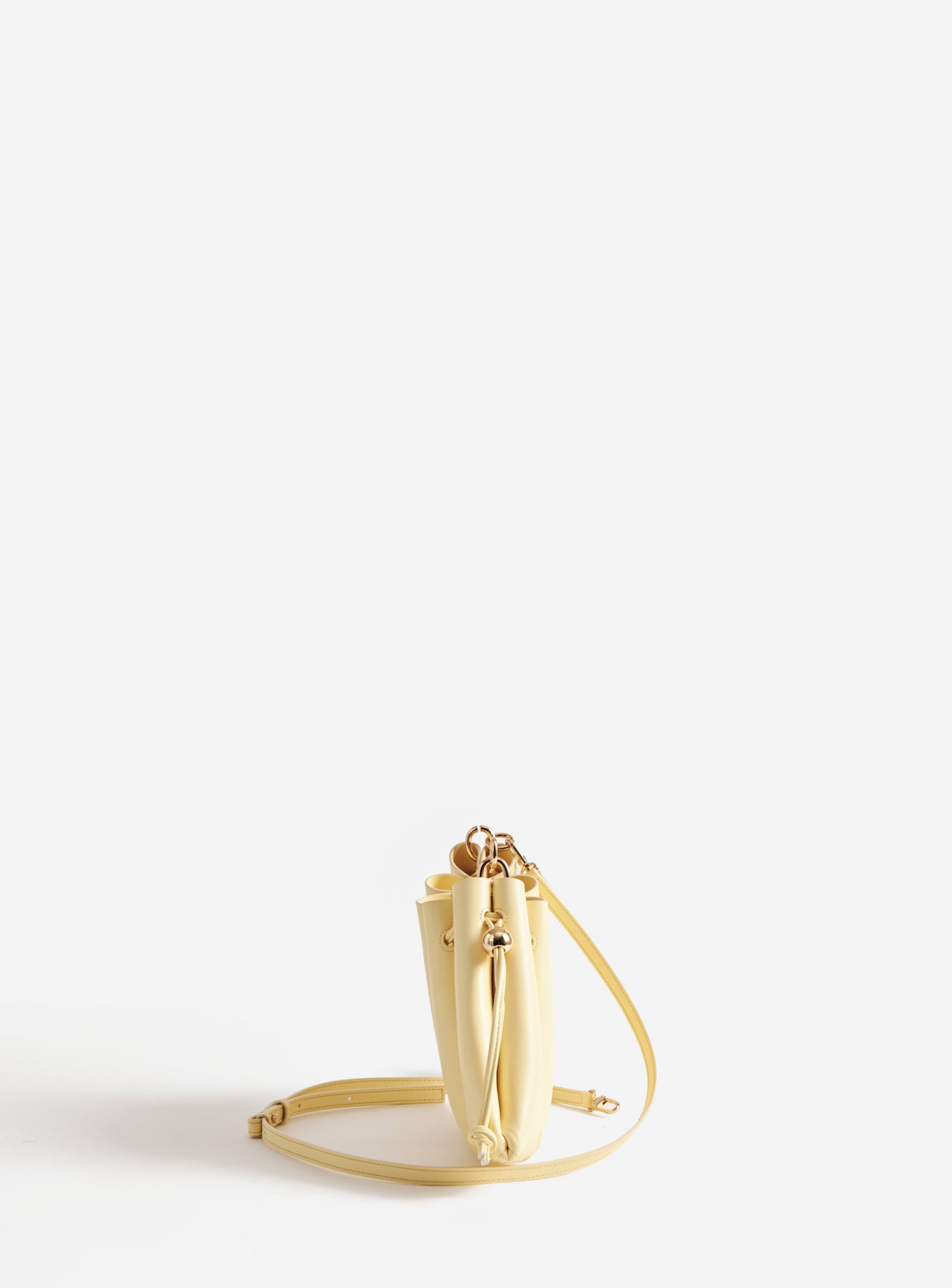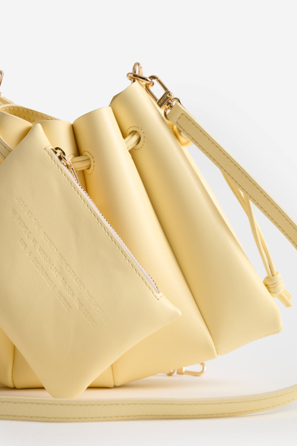 Add a sunny touch to your outfit with the Calipso Crossbody Vegan Fabric Pastel Yellow. Crafted from recycled vegan fabric, this bag features a delicate pastel yellow color, ideal for a light and lively look. The design is completed by the drawstring closure that defines its shape. The adjustable and removable shoulder strap makes it extremely practical for crossbody use, ensuring a playful yet sophisticated style.