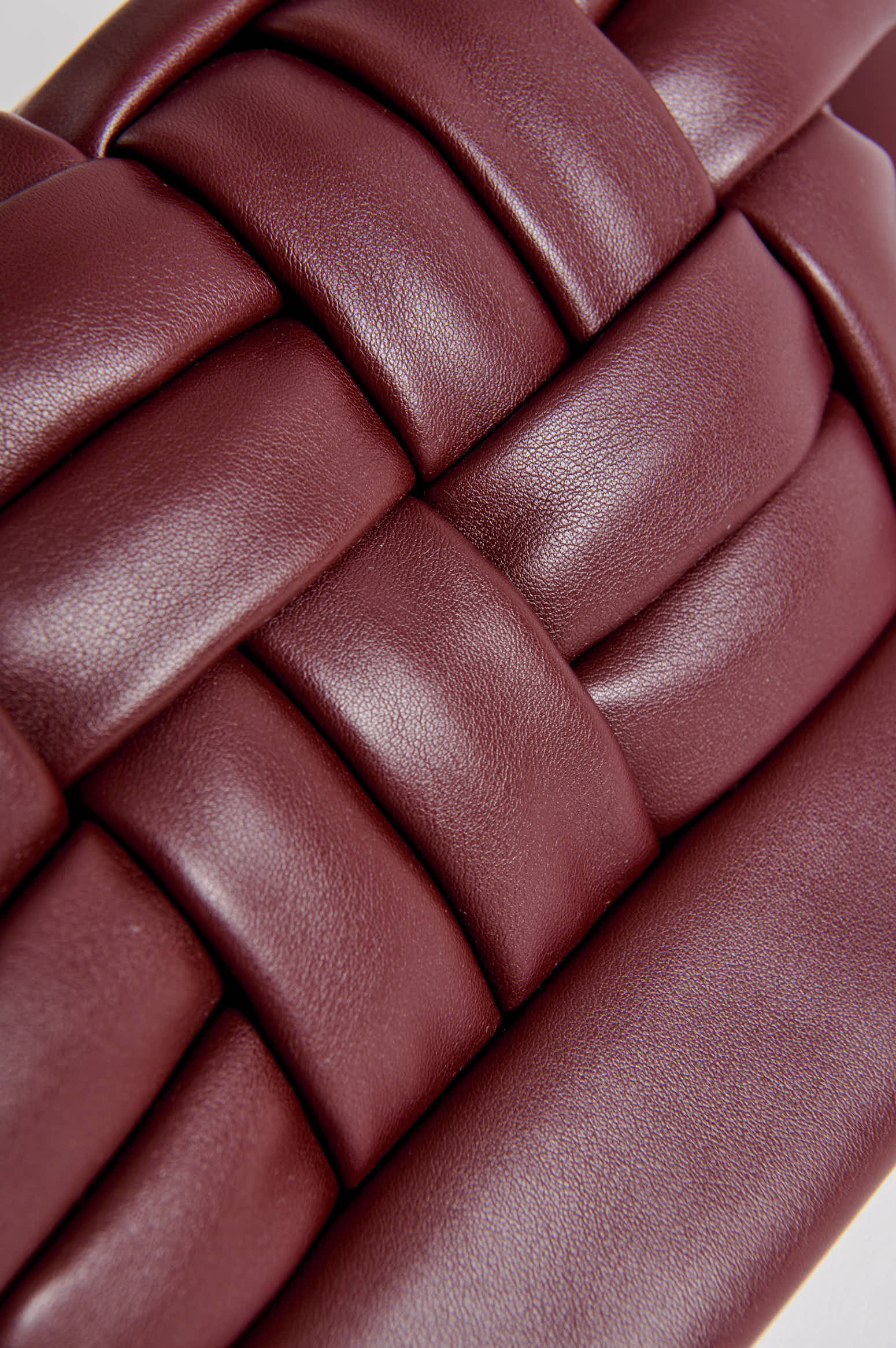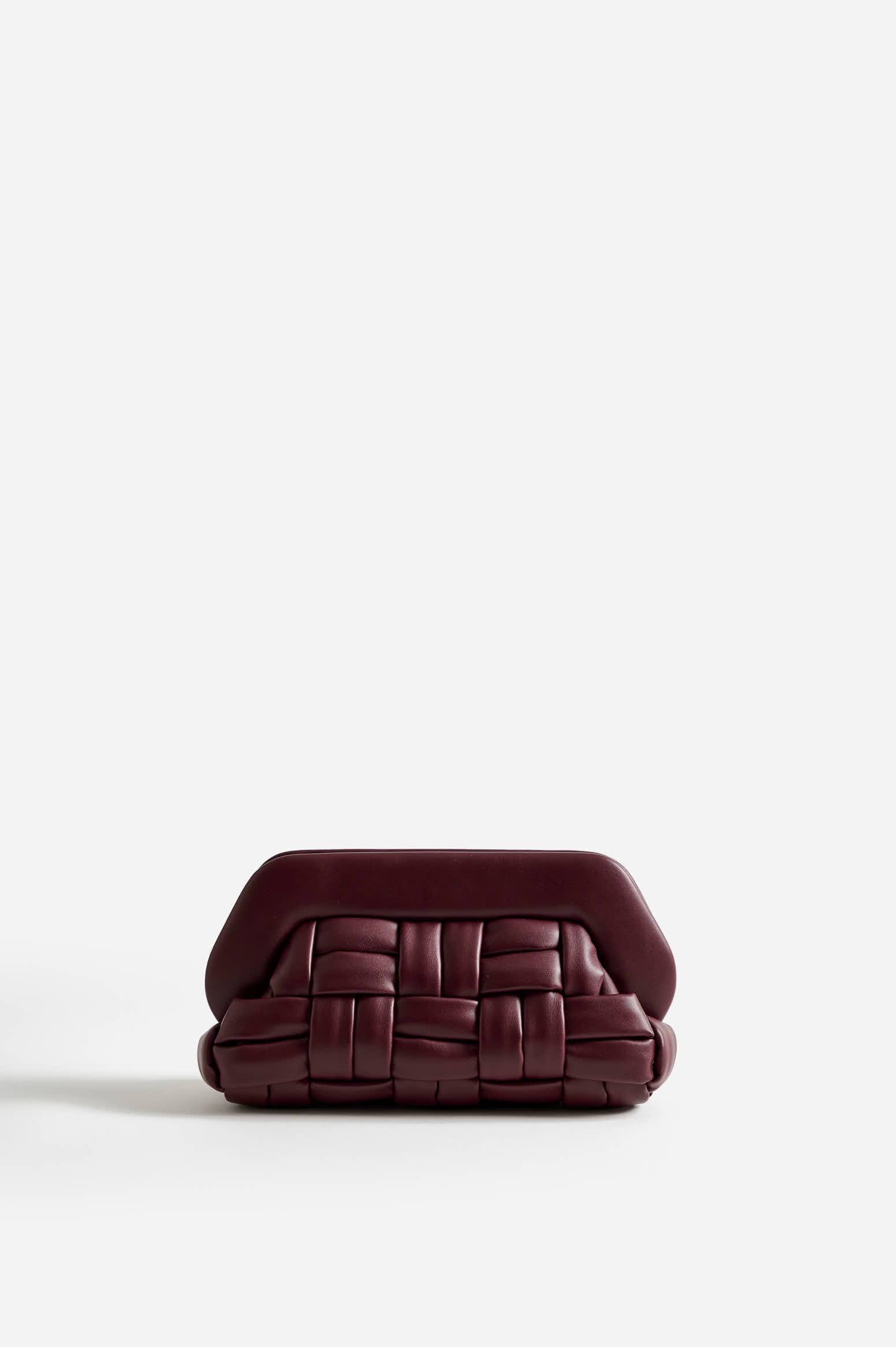 Bios Weaved Prune di Themoirè è una borsa vegana intrecciata, con una vibrante tonalità prugna. Il gioco di trame e la struttura morbida creano un accessorio distintivo, dall’estetica contemporanea ed etica.