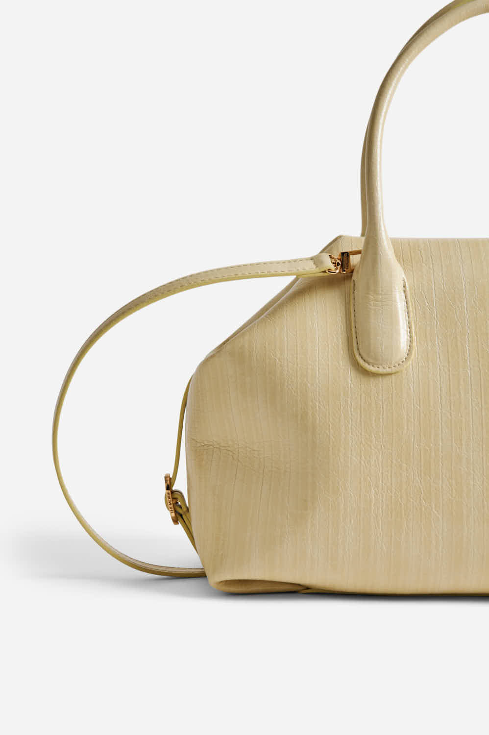 The Talia Trunk Medium Striped Vegan Fabric in theRutabaga color is the perfect accessory for those seeking a structured trunk bag with character. Crafted from Vegan Fabric with a distinctive glossy finish and a sophisticated striped texture, it captures attention with its modern design. The Rutabaga (pastel yellow) hue adds depth to the look. Thanks to the magnetic closure and its versatility, it can be elegantly carried by hand, on the shoulder, or as a crossbody using the included removable shoulder strap.