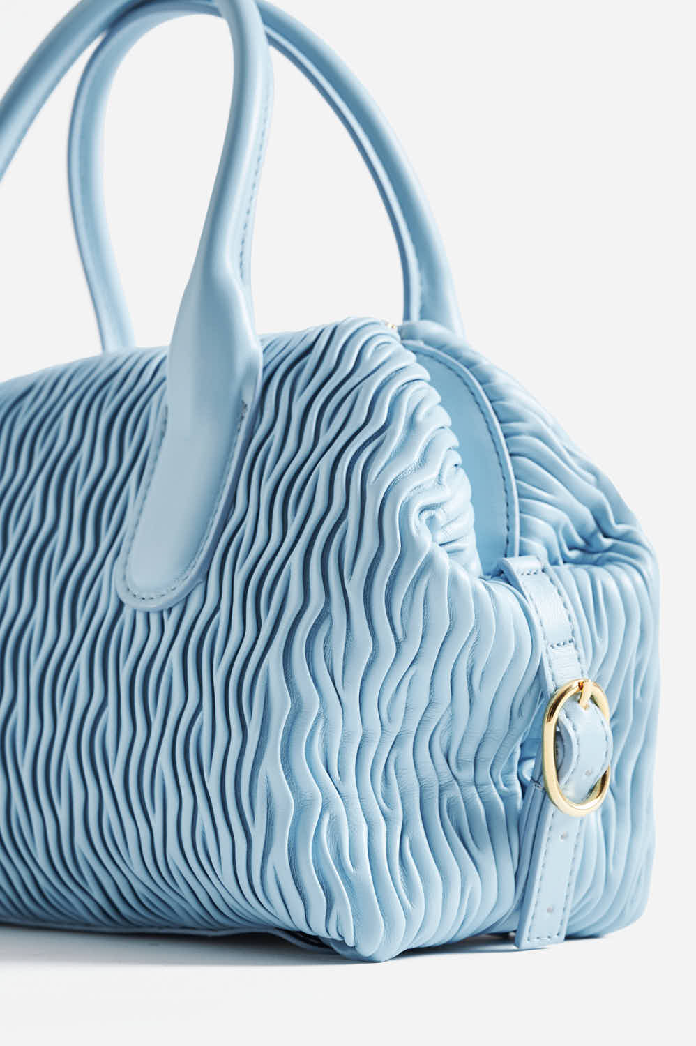 The Talia Trunk Small Ruffled Apple by Themoirè is the smallest trunk bag in the line, a concentrate of design and innovation. Made from Apple Material (plant-based material derived from apples), it stands out for its exclusive ruffled texture that gives it a sophisticated tactile appearance. The Niagara color is a fresh and modern shade that enhances the structured trunk shape. Despite its compact size, the bag offers maximum versatility: it can be elegantly carried by hand, on the shoulder, or as a crossbody thanks to the included removable shoulder strap. A small but high-impact accessory, perfect for those seeking cutting-edge vegan luxury.