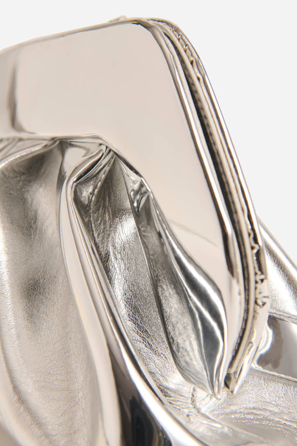 The TIA Stripes Silver clutch is the ideal accessory for those who favor a bold, futuristic look. Its unmistakable silhouette is wrapped in a bright metallic silver finish, while the Stripes design creates a fascinating tactile and visual contrast between glossy and matte areas. Crafted with the brand's commitment to vegan and sustainable materials, this bag is an ultra-contemporary style gem.