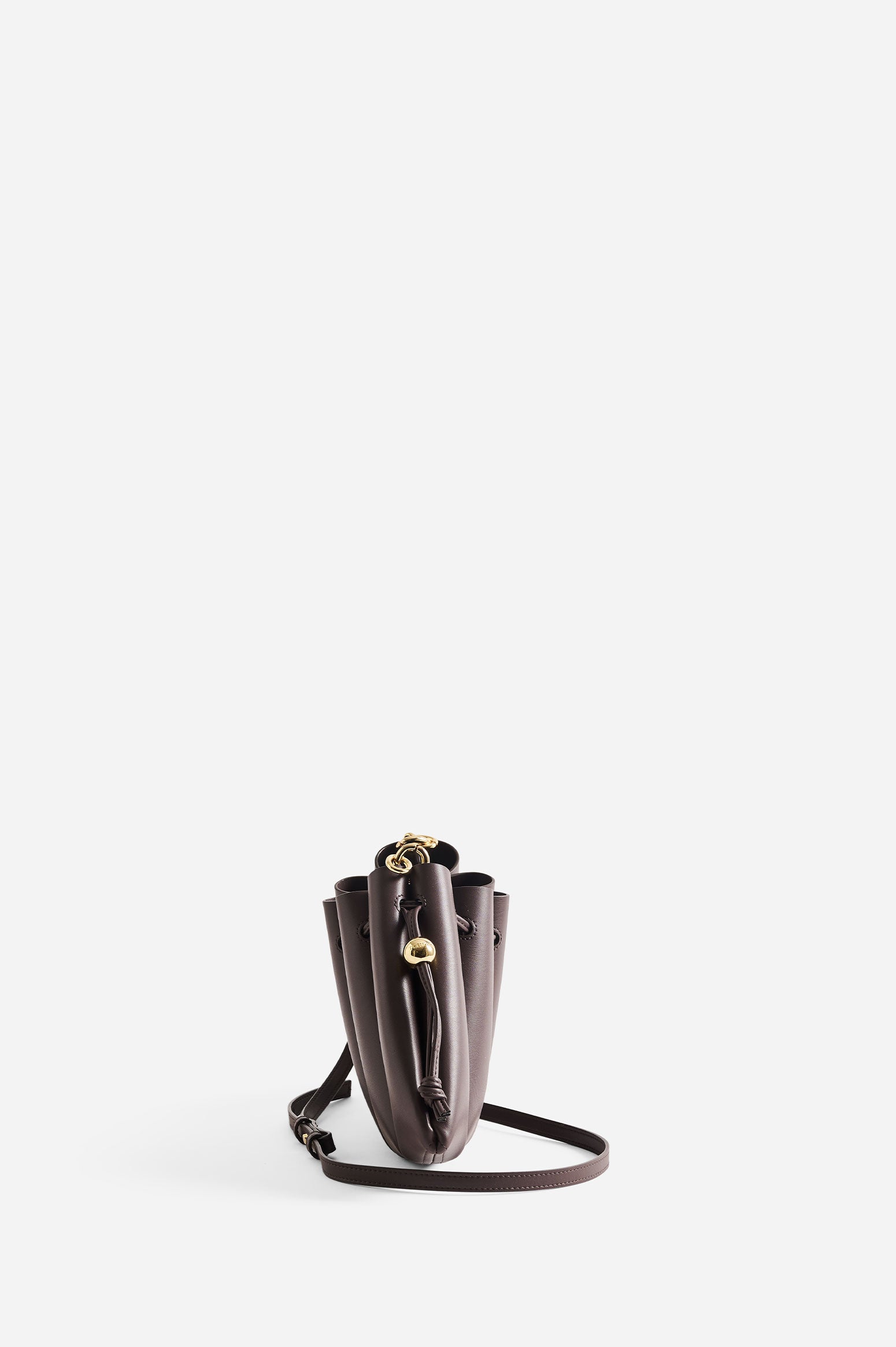 Dafne Vegan Fabric Ebony di Themoirè è una borsa a base vegetale in tessuto vegano riciclato. Il design compatto e avvolgente si adatta a ogni occasione, con dettagli curati e funzionali. Tracolla removibile silhouette contemporanea.