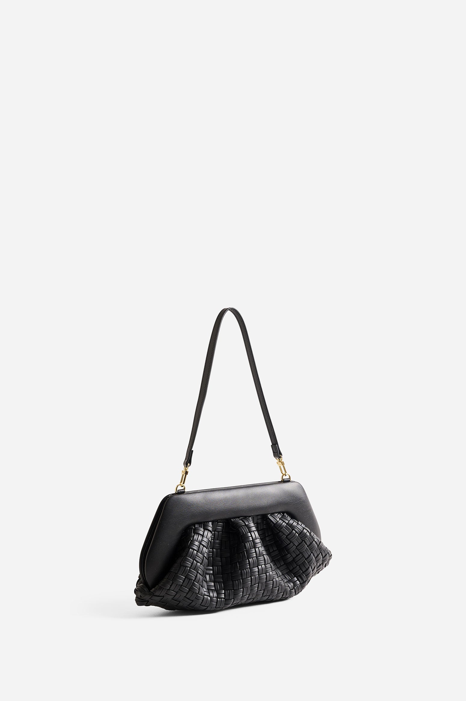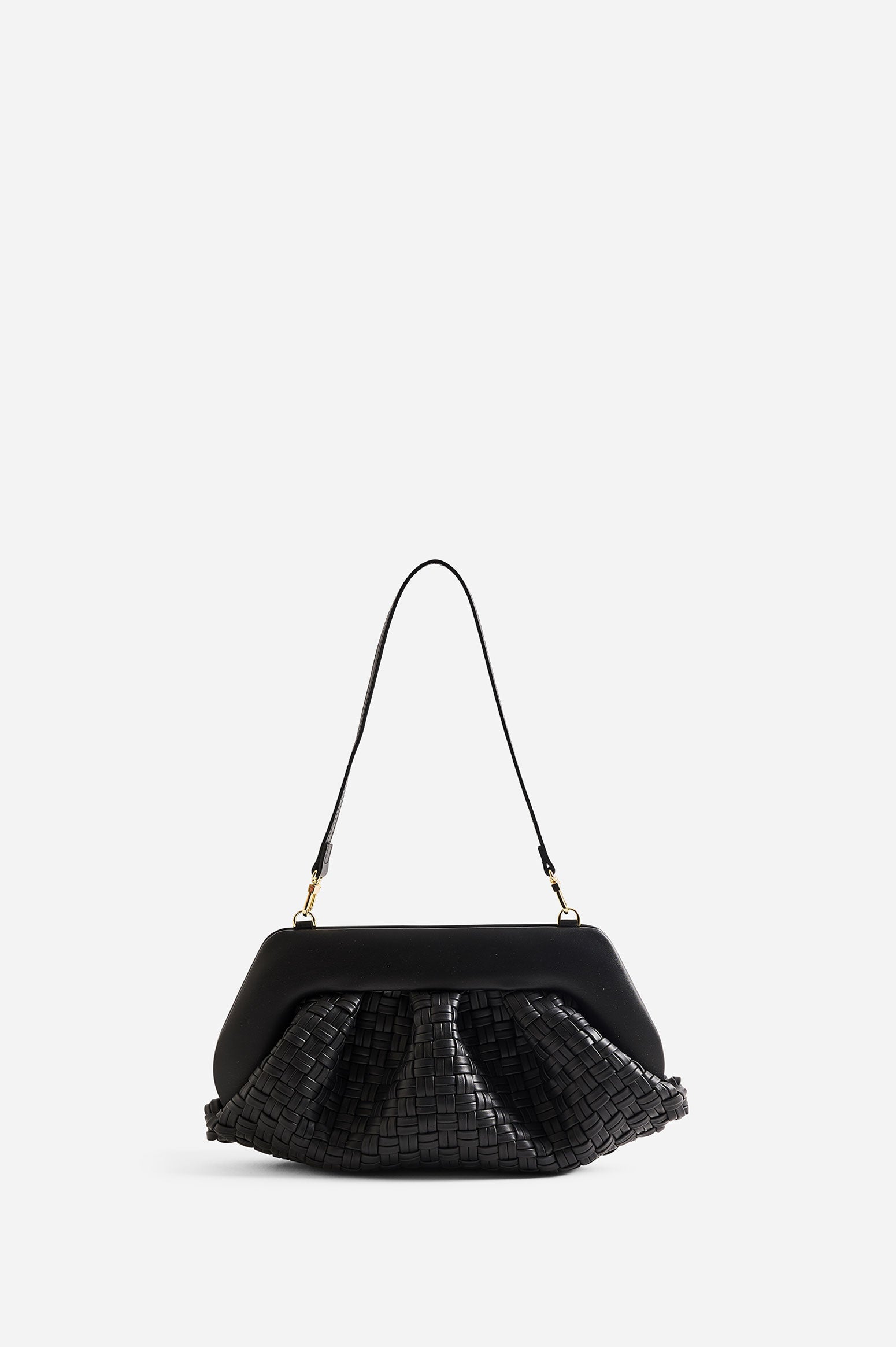 Emera Micro Weaved Black di Themoirè è una borsa elegante dal look deciso, realizzata in materiale vegano riciclato con un raffinato mini intreccio. Compatta ma capiente, è ideale per completare outfit urbani e sofisticati.