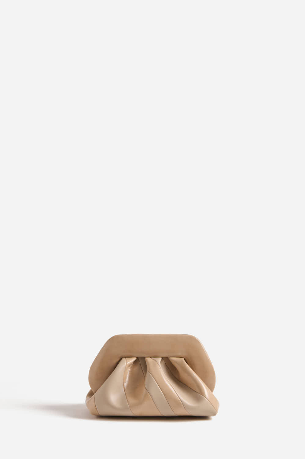 La clutch TIA Stripes Jojoba incarna l'eleganza minimalista. La sua forma distintiva, con chiusura strutturata e volume morbido, è vestita in una luminosa tonalità neutra Jojoba. Il design a strisce è ottenuto alternando fasce di ecopelle opaca e lucida, creando un sottile ma affascinante contrasto tattile. Realizzata con l'impegno del brand per materiali vegani e sostenibili, questa clutch è perfetta per completare con discrezione ed eleganza sia i look da giorno che quelli da sera.